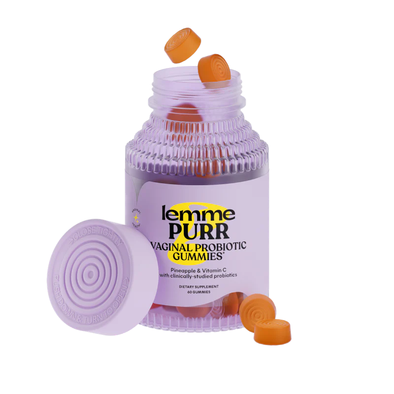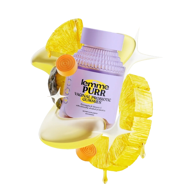Lemme Purr is formulated with a clinically-studied dose of SNZ 1969™ probiotics, demonstrated to support vaginal health.* Additionally, our gummies include 100 mg of real Pineapple Extract (per serving) and antioxidant Vitamin C.